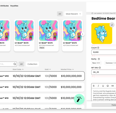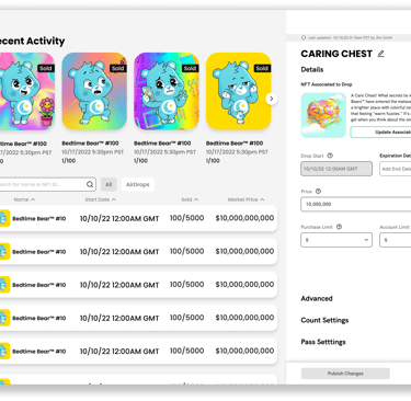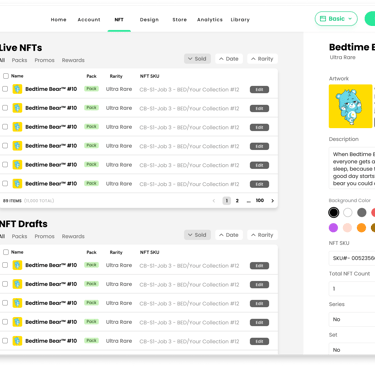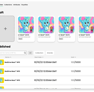 Once the vision became clear we started mapping out NFT creation. Scalability was at the top of mind, with large collections of 10,000 or more to 1 of 1 NFTs.