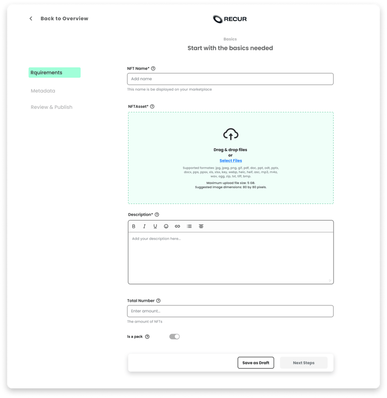 Recur Studios provides a tool for Creation, Curation, and Publishing of NFT's and Web 3 services. Making crypto easy for a basic to advanced users.
