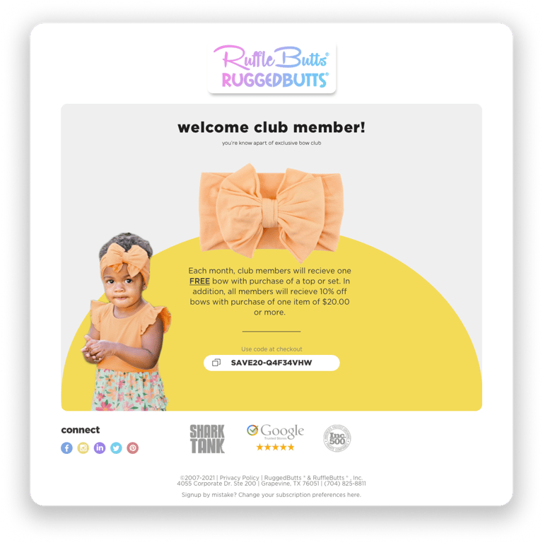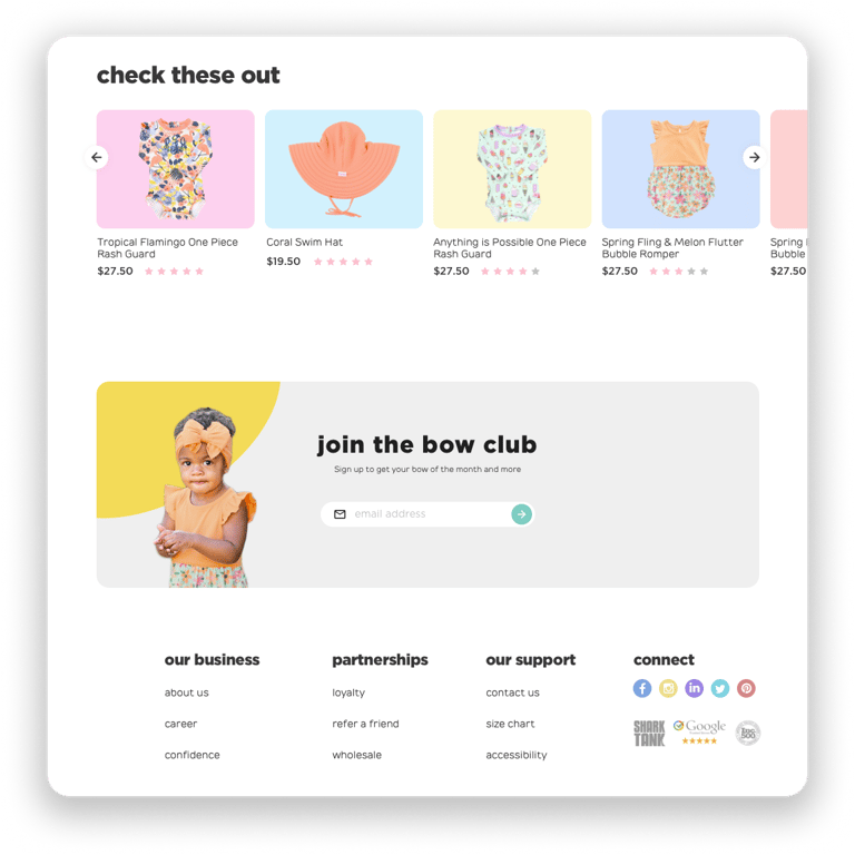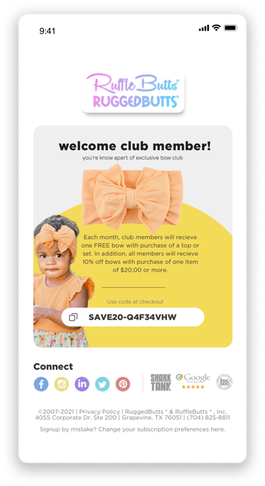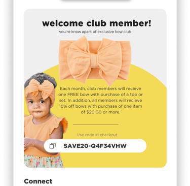 The Bow Club allows customers to feel rewarded through a simple monthly gift and a small discount to accessorize an outfit or single item. This will increase engagement at a cost effective solution.