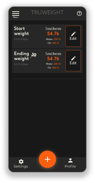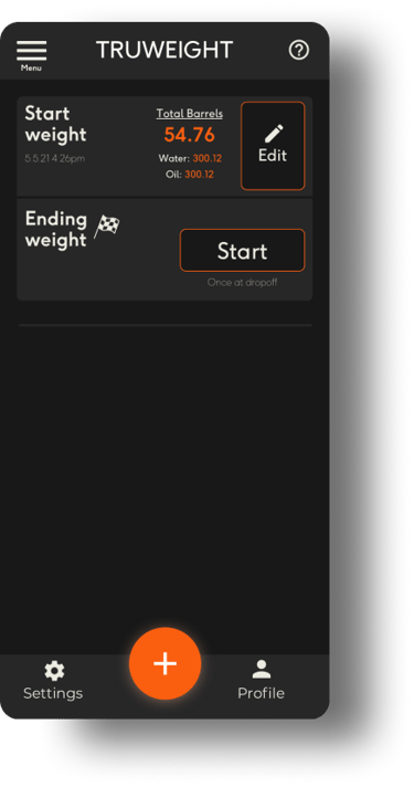 After submitting the ticket users will return to the dashboard with the starting weight. Once they have arrived to the drop-off they can complete the ticket with the ending weight by pressing START.