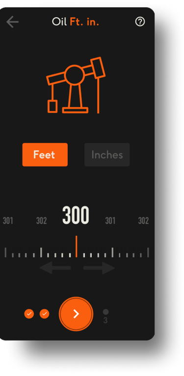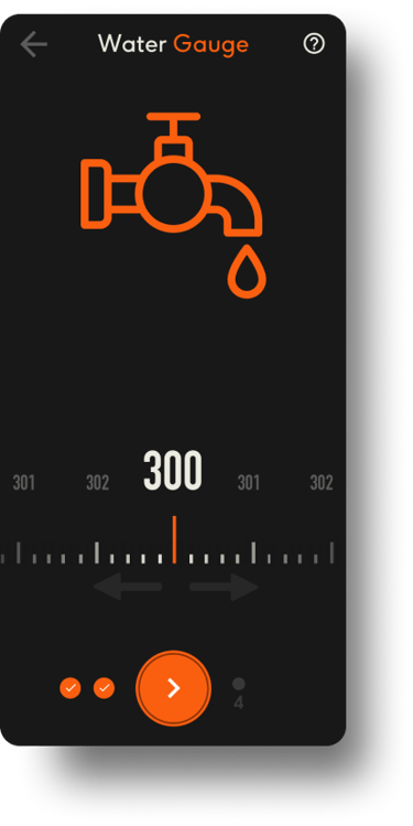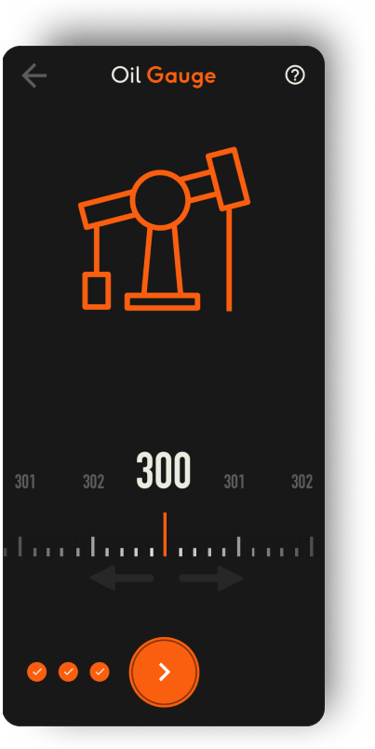 A similar design system for water reading will be used for measuring oil. Iconography will assist with the users awareness of the section while providing consistency in functionality.