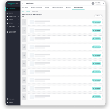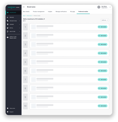 The empty state provides a centric path to the client on how to setup their preferred retailers.