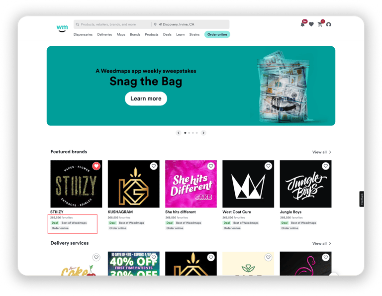Weedmaps is the largest cannabis aggregator in the world with tech backing for web and mobile applications. With the goal to connect consumer to the best products and stores.