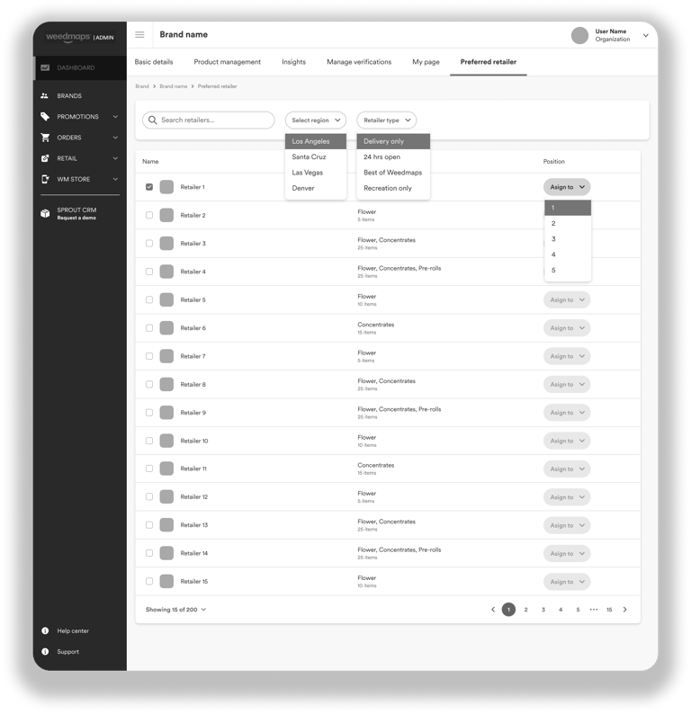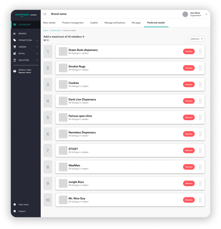 Once the client has added all their all their preferred retailers can will have two major actions.