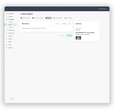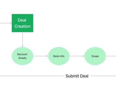 Defining the scope by starting with the needs of a deal to a user. Once those needs where understood, I presented to the brand in a simple step by step path. Once the deal is created they can observe the full list of deals and edit/observe where needed.