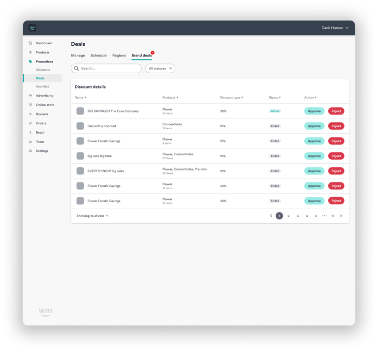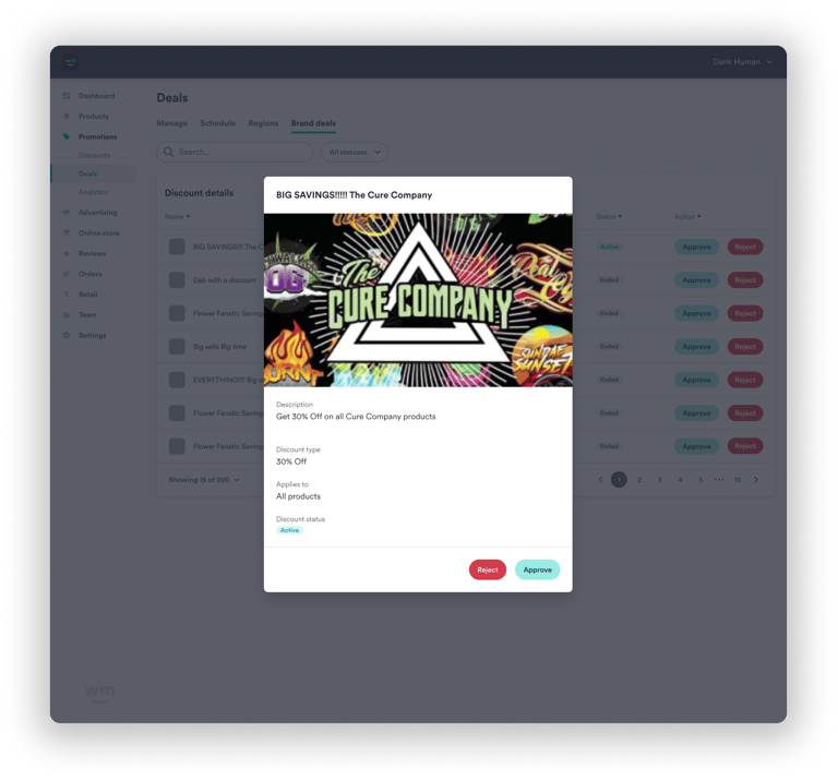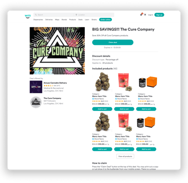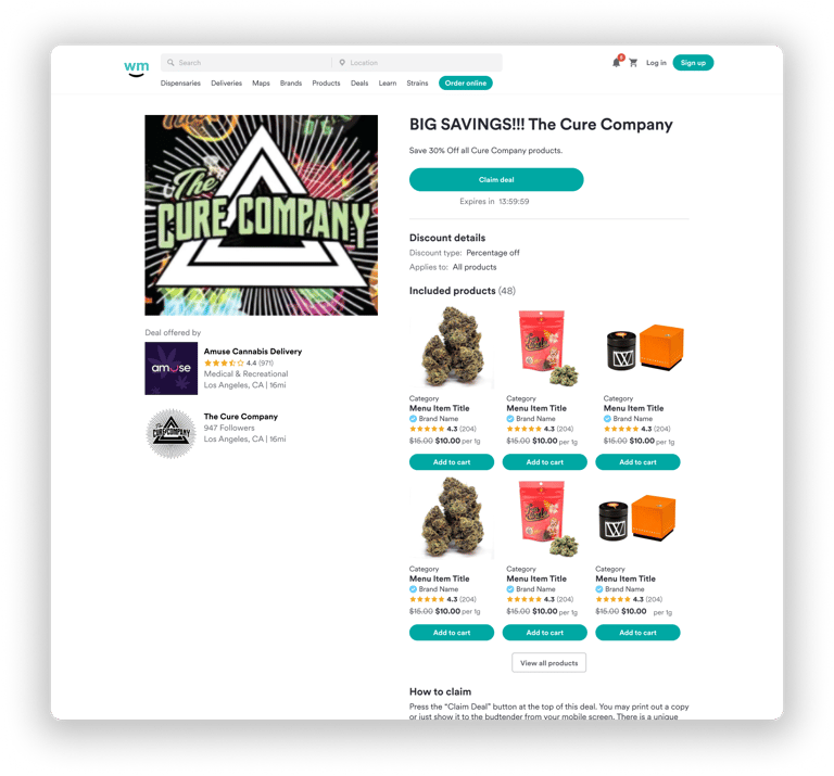 If a retailer accepts a branded deal, a consumer can view this deal on a brands page, retailers page, or Ad's page within Weedmaps.com or mobile application. The consumer will go to a specified retailer to redeem that deal.