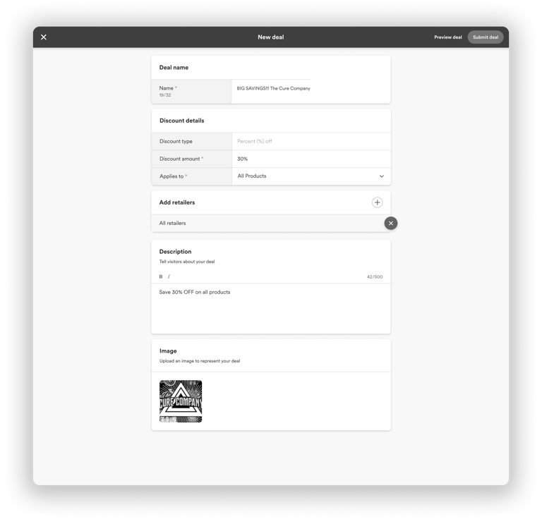 Once a branded deal is created, they can share it with retailers that carry their products. The retailer will have the option to accept or deny the deal.