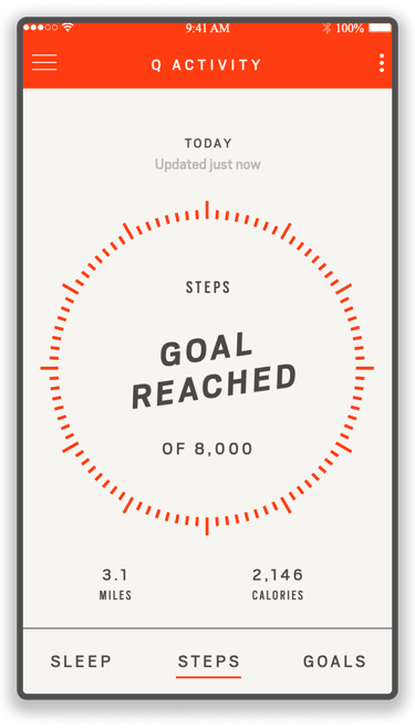 Convey the concept and method of goal tracking through a clear user interface that is optimized for the task of tracking a goal, while also maintaining as much consistency with activity and sleep tracking as possible.