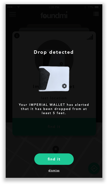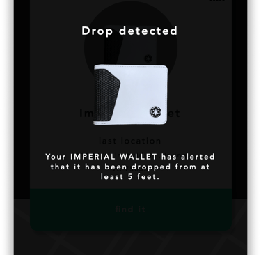 In addition to location the wallet, users will be notified if the wallet drops 3' or more.