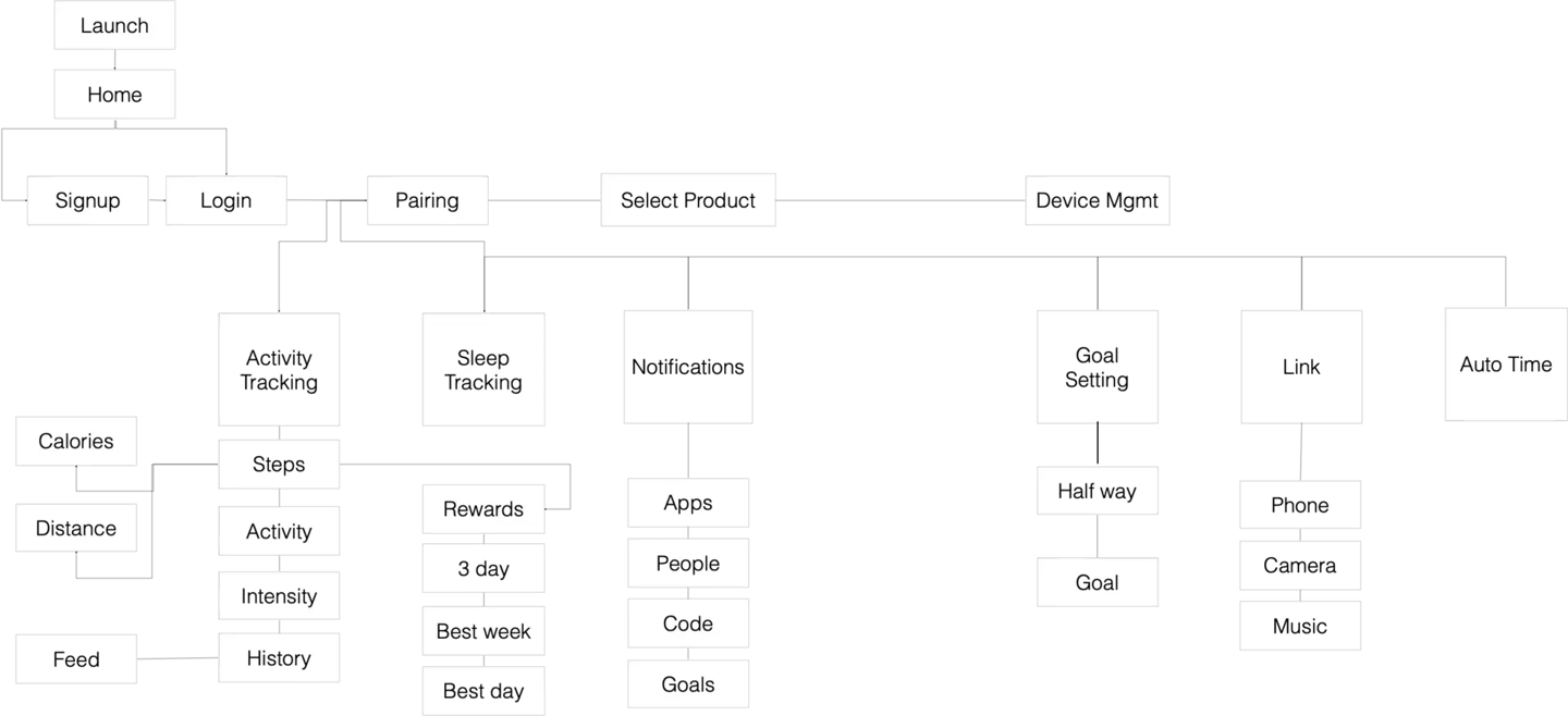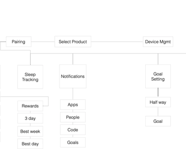 After defining a problem, we focused on structure of the mobile app. This flow will adjust depending on what device you have connect to the user's phone.