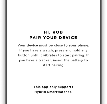During the onboarding process, the user is prompted to pair their wearable. They may skip this step if they want to go straight into the app and set it up later.