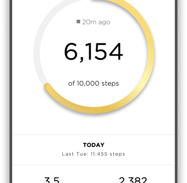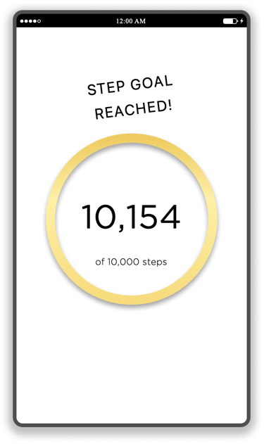 The chart shows the user their progress toward their step goal for the day. Additionally, it shows calculated calories burned and steps taken.