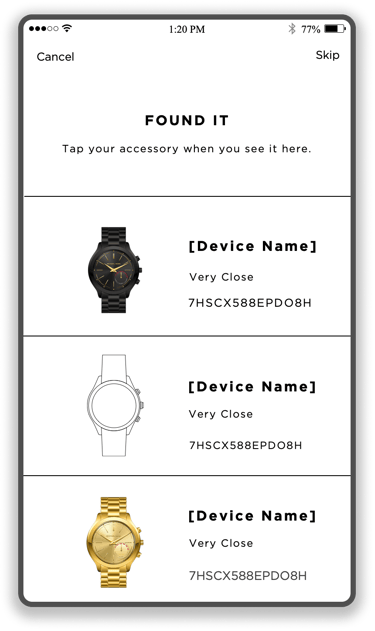 The app will scan for nearby wearable devices and display what is available to the user.