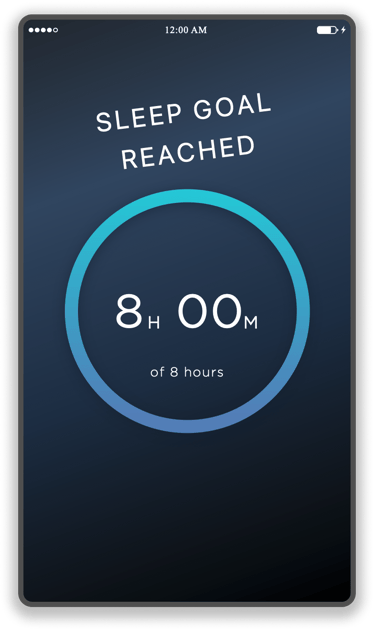 The chart shows the user their progress toward their sleep goal from the previous night. Additionally, it shows calculated breakdown of when they were sleeping restfully, lightly, or awake.
