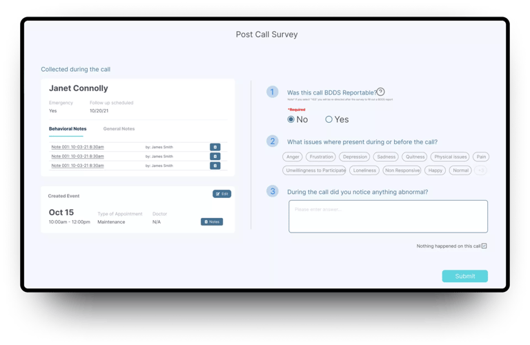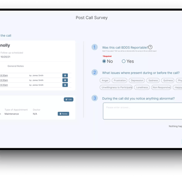 During the post call, each Care Partner will be asked three questions to answer or they can check the “Nothing happened” box